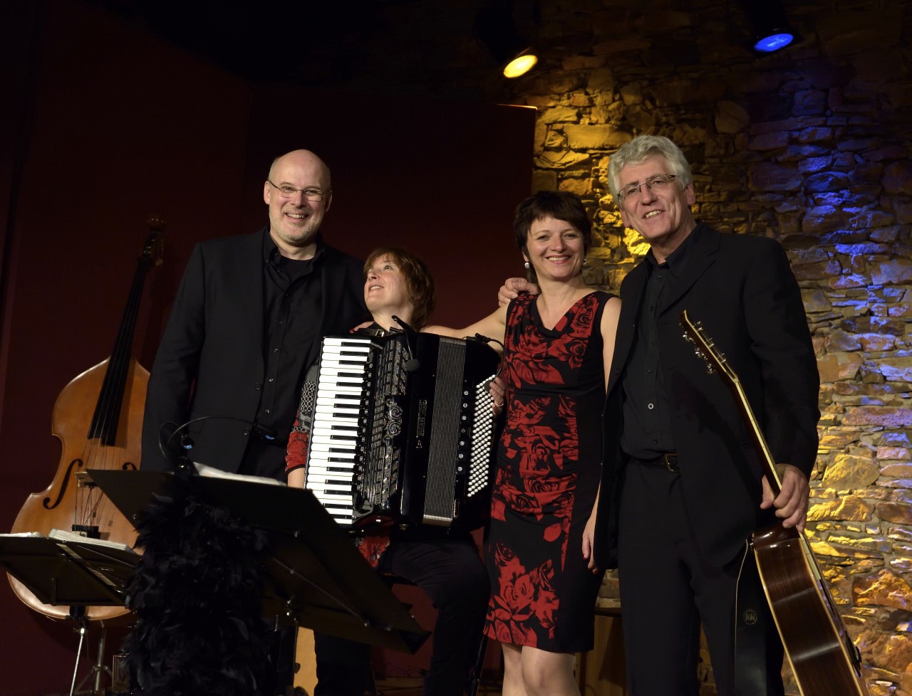 Die Französin, wohnhaft in Rheinhessen, entführt die Zuhörer in das Sehnsuchtsland der französischen Chansons: Lieder von Edith Piaf, Barbara, Adamo, Francoise Hardy, Juliette Greco, Joe Dassin und vielen anderen bilden das klassische Repertoire der engagierten Musiker.
