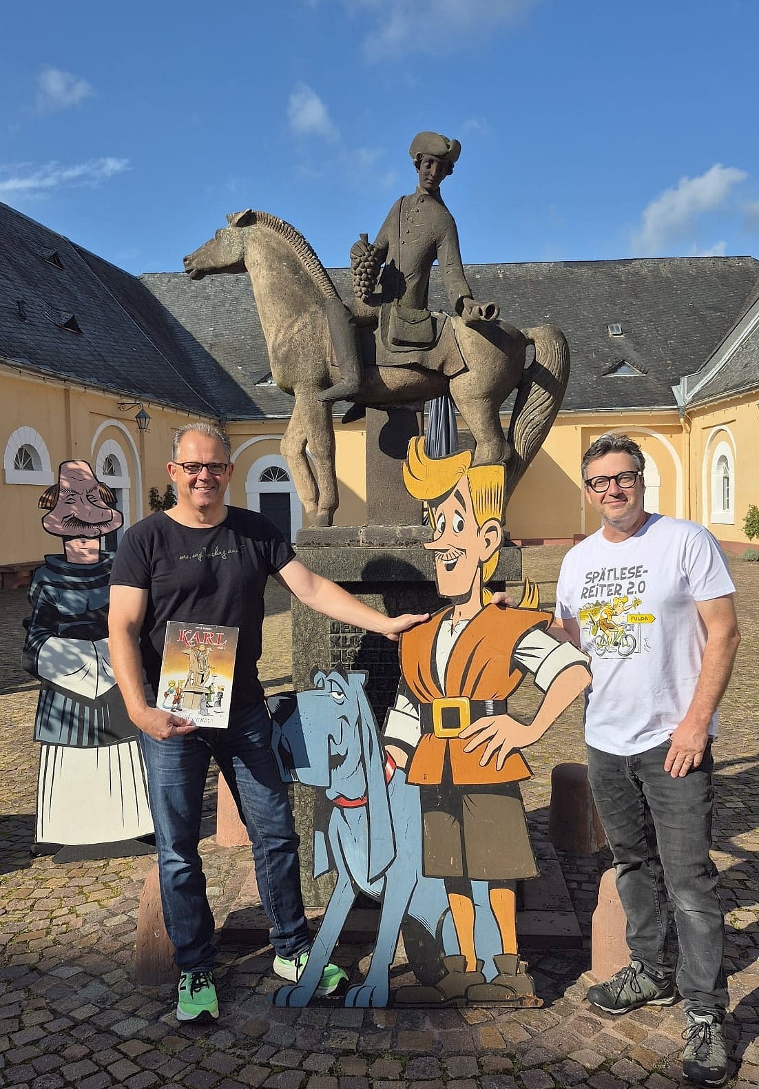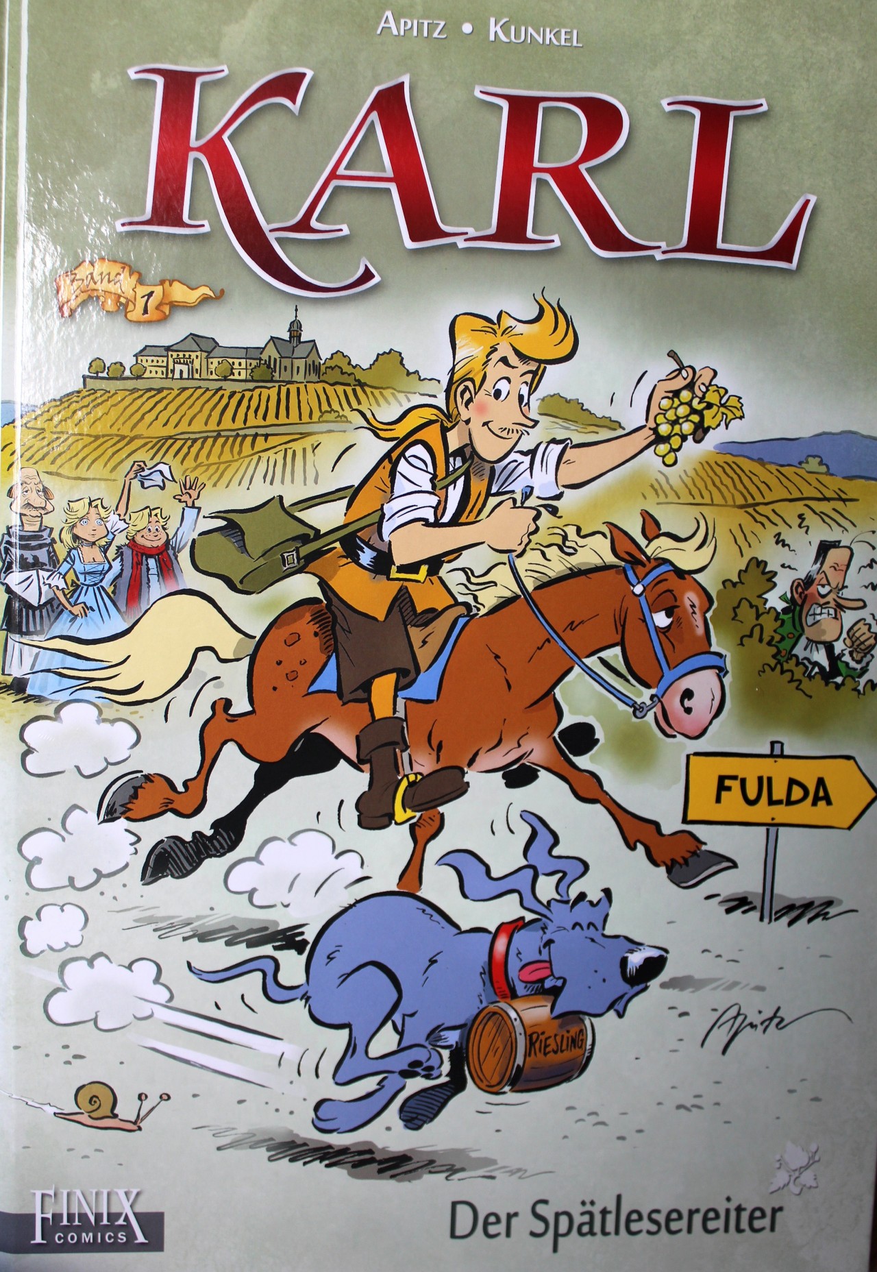 Rheingau. (sf) Er ist legendär, weit über den Rheingau hinaus: Am 23. August 1988 erschien der erste Karl-Comic „Karl, der Spätlesereiter" aus der Feder der heute weit über den Rheingau hinaus bekannten Comicautoren Michael Apitz und Patrick Kunkel. Bis heute haben Karl und seine Freunde auf ihren lustigen Abenteuern mit geschichtlichem Hintergrund und viel Witz im Detail den Rheingau und seinen Wein weltberühmt gemacht. In zahlreiche Sprachen, unter anderem auch ins Japanische, wurden die Comicgeschichten rund um den Rheingauer Entdecker der Spätlese auf dem Johannisberg übersetzt.