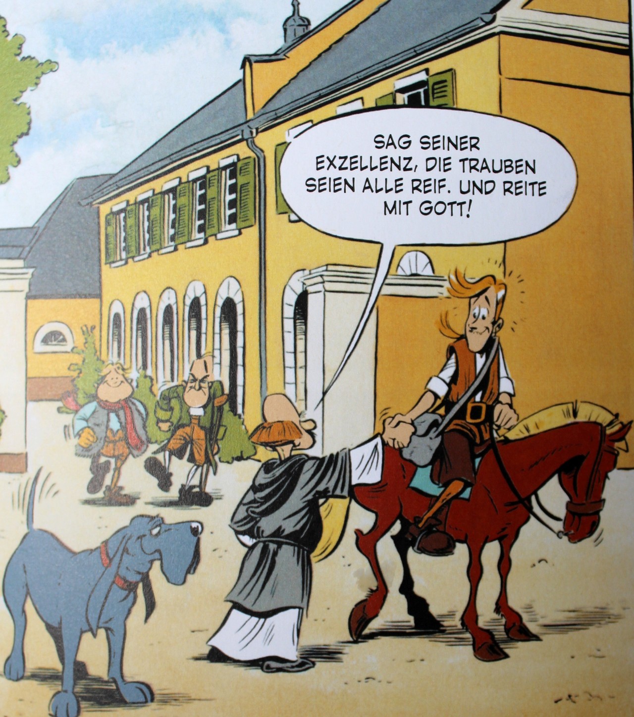 Die jährt sich in diesem Jahr zum 250. Mal und wird als großes Jubiläum auf dem Johannisberg und im ganzen Rheingau mit vielen besonderen Events gefeiert. Passend dazu gibt es eine Neuauflage des Spätlesereiters: der Finix-Verlag in Wiesbaden hat den ersten Comic von „Karl, der Spätlesereiter“ als Jubiläums-Auflage mit komplett neuem Sekundärpart zur Geschichte der Spätlese, recherchiert und geschrieben von Prof. Dr. Leo Gros und Oliver Mathias, herausgegeben. „Die Neuauflage von Band 1 (ISBN 978-3-910965-31-7) der Apitz/Kunkel - Comics haben wir aus Anlass des 250jährigen Jubiläum der Entdeckung der Spätlese herausgebracht. Der Preis ist 17,75 Euro – passend zum Jahr 1775, in dem die Spätlese „erfunden" wurde“, erklärt Oliver-Frank Hornig von Finix-Verlag.