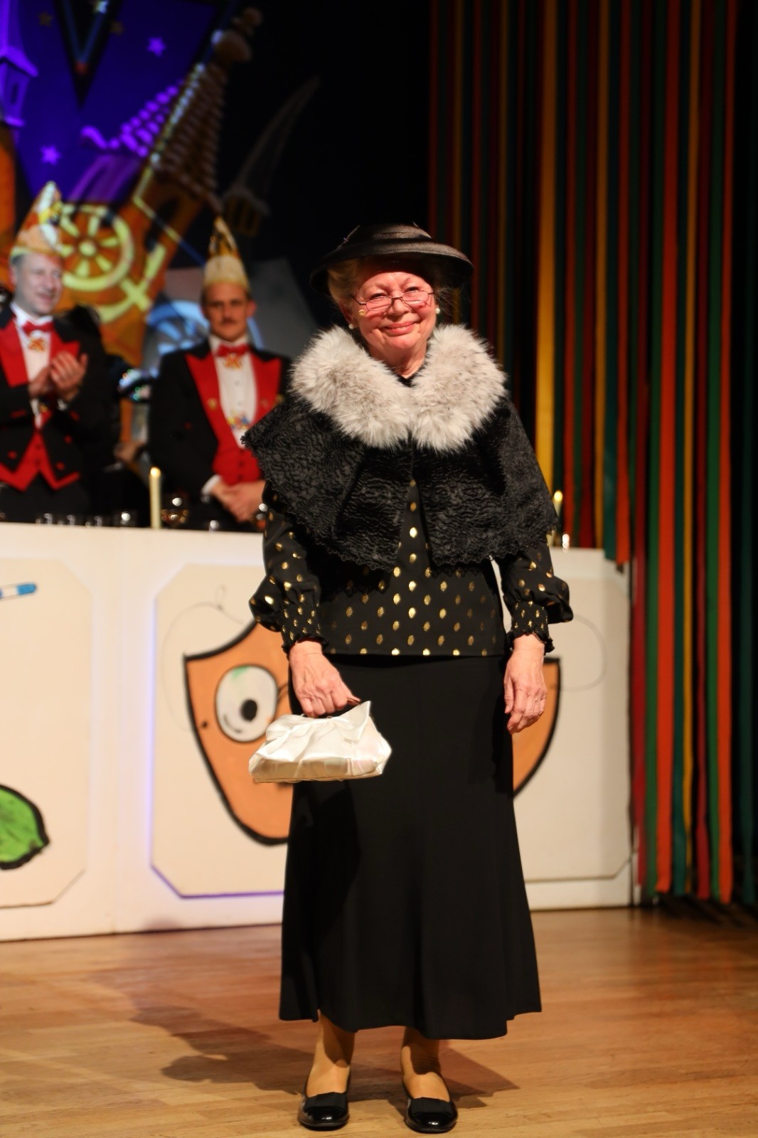 Einen massiven Angriff auf die Lachmuskeln unternahm dann wieder Magda Mildner, die als „En Madamsche“ alle im Saal mit ihren unvergleichlich komischen Narreteien und köstlicher Mimik zu Lachtränen rührte: „Ich bin en Madamsche. Gelle – mer sieht´s doch. Ich entstamme einem alten Rheingauer Adelsgeschlecht. Meine Vorfahren waren lauter Artistokraten. Seit unzählige Generatore gehöre mir zu de Interlekdelle im Rheingau. Hochwohlkloare Leut, so wie ich. Ich bin eine geborene von: Von Winkel. Als ich das Licht der Welt erblickte, war ich nicht von schöner Gestalt. Die alte Geedscher saate: Schee isses grad nitt, des wär´n mir später nitt so leicht an de Mann bringe. Nao ja - vielleicht wächst´s sich jo aus. Wenn nitt, muss es sich halt später schminke. Ei schminke muss ich mich heit noch. Gelle wie schlimm“. Als eine sehr geschätzte Gastrednerin aus Winkel war Magda Miltner beim KCV wieder mal ein ganz besonderer Höhepunkt und präsentierte sich als wahres „Urgestein der Fastnacht“, das mit Recht vom Publikum gefeiert wurde.