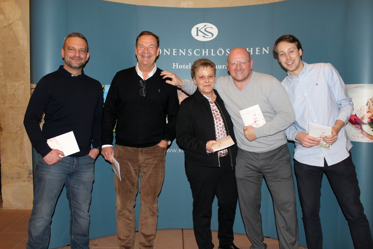 Die meisten Gäste eröffneten ihren Abend beschwingt mit einem frischen Rheingauer Riesling oder einem prickelnden Sekt, denn schließlich stand die Veranstaltung unter dem Motto „Eröffnungsparty". Und Partystimmung herrschte wirklich in den weitläufigen Räumen des Laiendormitoriums, die Joachim Jakob und sein Team mit farbigem Licht, der Partystimmung entsprechend, bunt ausgeleuchtet hatten. Immer wieder traf man auf Bekannte und treue Freunde des Gourmetfestivals, aber auch auf die Veranstalter Hans-Burkhardt und Johanna Ullrich, die vor allem auch den Sponsoren, den Köchen, Winzern und fleißigen Helfern rund um die Veranstaltungen herzlich dankten. Ohne ihr Mitwirken und ihre Unterstützung sei das Rheingau Gourmet Festival undenkbar. „Eine wunderbare Party“, freute sich H.B. Ullrich. Knapp 6500 Festival-Gäste seien im vergangenen Jahr zu dem Festival gekommen. Drei Viertel der Besucher kamen aus dem Großraum Rhein-Main. Über 1000 Gäste reisten aus ganz Deutschland und dem Ausland an. Mittlerweile wüssten Feinschmecker und Weinfreude aus aller Welt eben, dass im Vorfrühling der Rheingau seinen ganz besonderen Reiz habe und dazu gehöre als feste Größe auch das Rheingau Gourmet & Wein Festival im Kronenschlösschen in Hattenheim. Und auch die Gäste bekannten, dass das Programm der nächsten Tage mit Spannung erwartet werde. Besonders schön war, dass auch viele Rheingauer Feinschmecker unter den Gästen zu finden waren, rund zehn Prozent Rheingauer tummelten sich bei der Welcomeparty und kamen vielfach mit den weitgereisten Gästen ins Gespräch, die sich sehr interessiert über den Rheingau informierten.