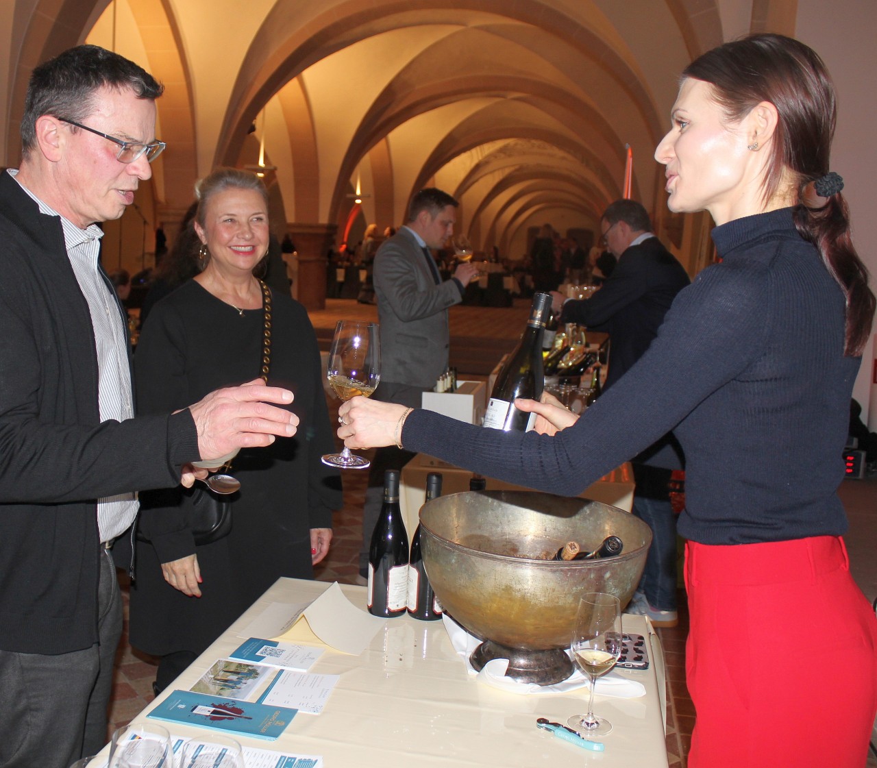 Die 15 Rheingauer Wein- und Sektgüter, die Weingüter Allendorf, Bibo Runge, Georg Breuer, Diefenhardt, Jakob Jung, Robert Weil, Reiner Flick, Georg-Müller-Stiftung, Graf von Kanitz, Kloster Eberbach, Künstler, Leitz, Y Weinmanufaktur und F.B. Schönleber offerierten über 30 edle Köstlichkeiten aus ihren heimischen Kellern. Großes Interesse herrschte auch an den Ständen der fränkischen Gastwinzer Fürstlich Castell’sches Domänenamt und Bürgerspital zum Heiligen Geist, dem Weingut Stefan Müller von der Mosel, den rheinhessischen Weingütern St. Antony und Thörle, der französischen Domaine du Pelican, dem italienischen Weingut Borgonero und dem österreichischen Weingut Schlumberger. Alkoholfreie Getränke gab es von der Manufaktur von Nahmen, die mit ihren Spezialitäten wie dem Frucht-Secco Apfel-Rote Johannisbeere-Himbeere oder Apfel-Quitte punktete.