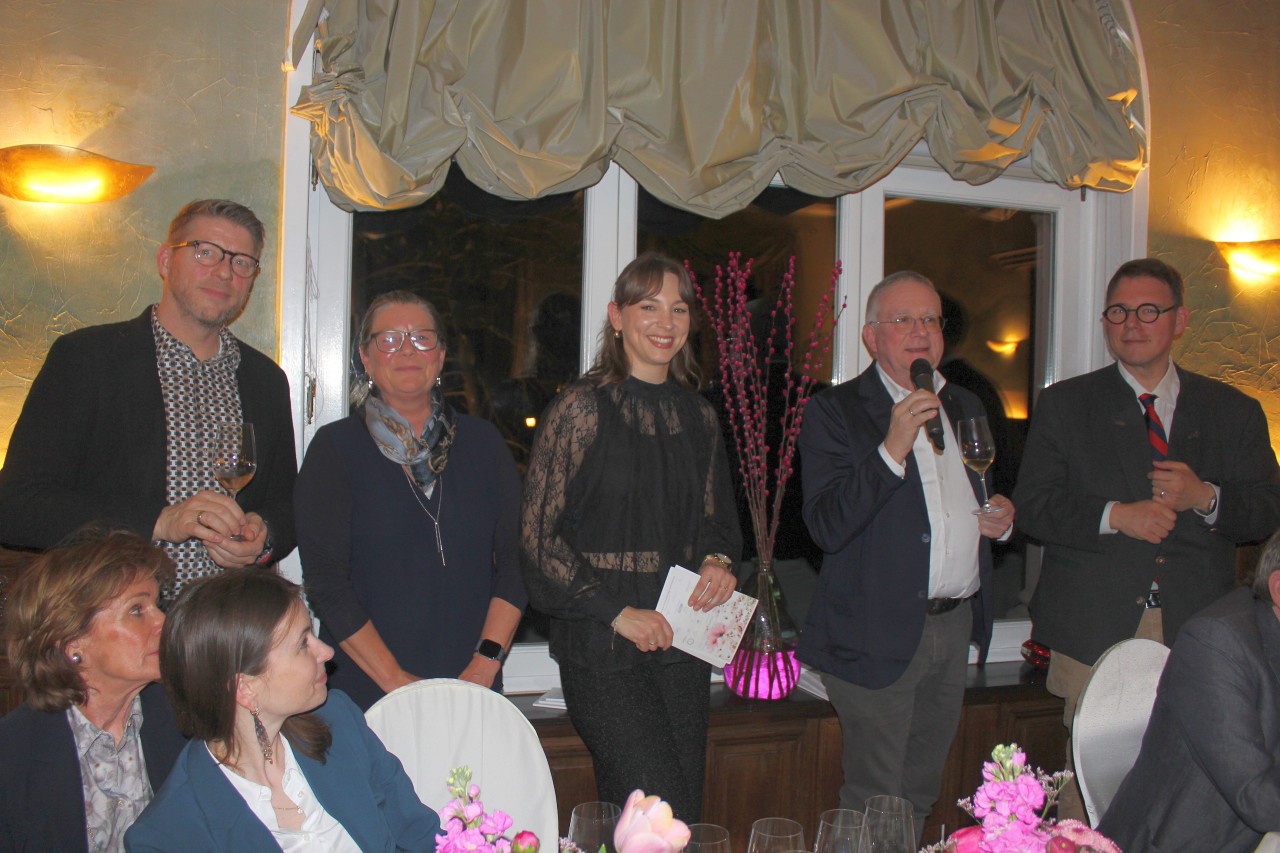 Das beeindruckte auch die souveräne und charmante Moderatorin des Abends, Katharina Höfling. Locker im Gastgeber-Ton ging sie darauf ein, bei wie vielen großen und kleinen Festen und auch bei welch ganz alltäglichen Gelegenheiten ein Glas guter Winzersekt schmeckt. Weil dies so viele sind, seien die Deutschen auch ungeschlagen seit Jahrzehnten weltweit Rekordhalter beim Sekttrinken. „Über drei Liter pro Kopf und Jahr“ seien es statistisch gesehen, doch das würde bei ihr nicht mal im Monat reichen und auch die Reaktion des Publikums zeigte, dass hier der Sektkonsum wohl höher liegt. Sehr unterhaltsam entlockte Katharina Höfling zwischen den einzelnen Gängen den Sektmachern viele Geheimnisse und Anekdoten rund um ihren prickelnden Rebensaft. Und nicht nur Katharina Höfling war begeistert von den Winzersekten, die sich durchaus mit französischen Champagnern vergleichen lassen konnten und eben auch wunderbare Essenbegleiter sind.