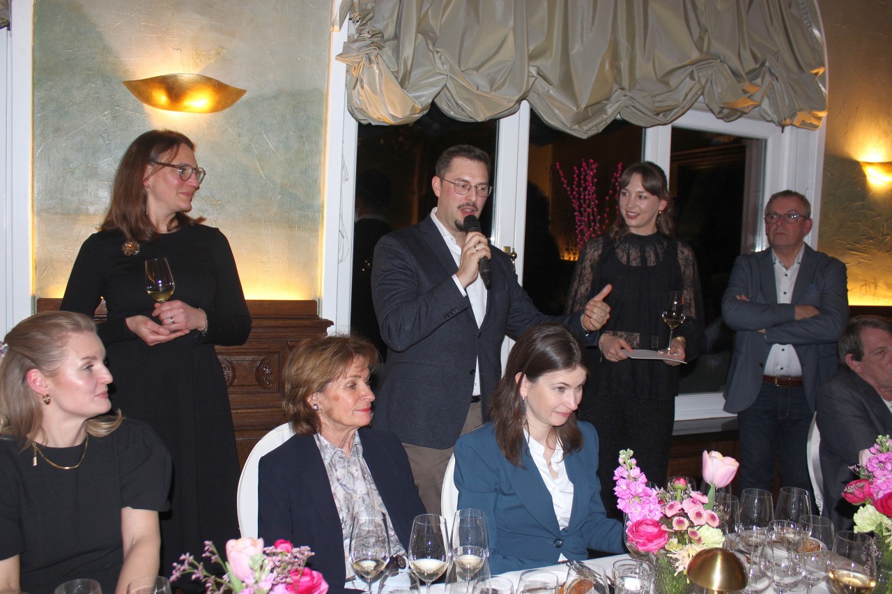 Eine breite Plattform hatten aber auch die Rheingauer Sektmacher, die beim Dinner „Die besten deutschen Sekte“ mit herausragenden „Bubbles“ glänzten: Vom Wein- und Sektgut Barth kam ein BARTH Sekt 2019 Hattenheimer SCHÜTZENHAUS Riesling brut nature, Theresa Breuer vom Rüdesheimer Weingut Georg Breuer hatte einen 2019 GEORG BREUER brut mitgebracht und Familie Schönleber aus Mittelheim servierte einen F.B. Schönleber CREATION Riesling & Spätburgunder. Von Sebastian Kemmerer vom Johannisberger Sekthaus gab es eine Cuvée Thermidor brut nature und von Peter Weritz vom Weingut Künstler einen 2018 Hochheimer Stein Riesling Sekt brut nature. Das Dessert begleitete eine 1993 Erbacher Michelmark Riesling Beerenauslese vom Weingut Baron von Knyphausen.