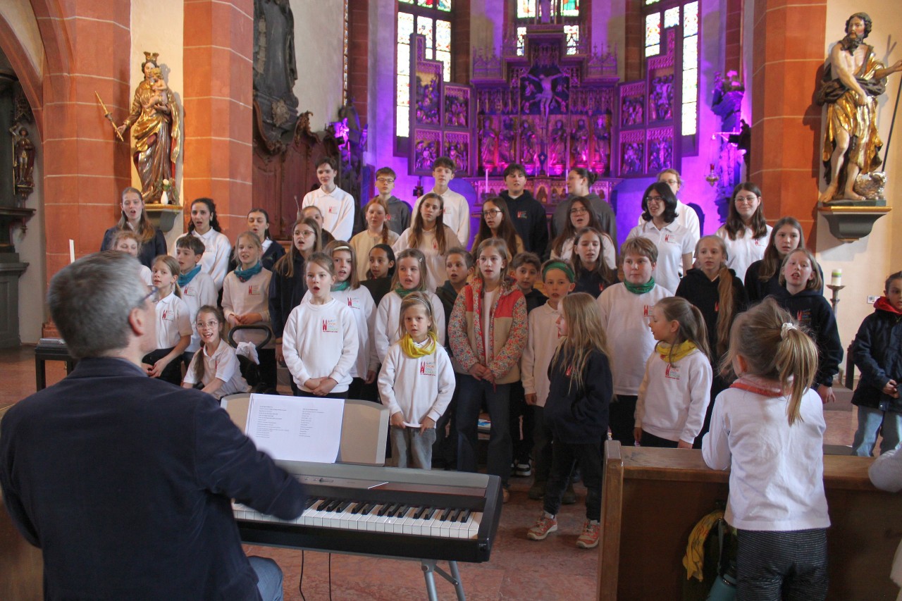 Es sei Teil der Stellenausschreibung gewesen, einen Kinder- und Jugendchor zu gründen, erinnert sich Bezirkskantor Florian Brachtendorf. Also rief er mit seinem Amtsantritt 2010 die „Kinderchöre am Rheingauer Dom" mit damals noch zwei Gruppen ins Leben. Sein Konzept, das er frei wählen durfte, kam bei den Rheingauer Kindern und Jugendlichen so gut an, dass schon in den nächsten Jahren zwei weitere Gruppen gegründet wurden. Damit legte der Bezirkskantor den Grundstein für eine altersgerechte, sehr erfolgreiche Chorarbeit mit Kindern und Jugendlichen im Alter von fünf bis 20 Jahren. Seit 2019 trägt die Gemeinschaft der Chorgruppen den Namen „Chorsingschule am Rheingauer Dom". Heute hat die Chorsingschule über 90 Mitglieder, darunter auch Jugendliche, die seit der ersten Stunde vor 16 Jahren mit dabei sind.