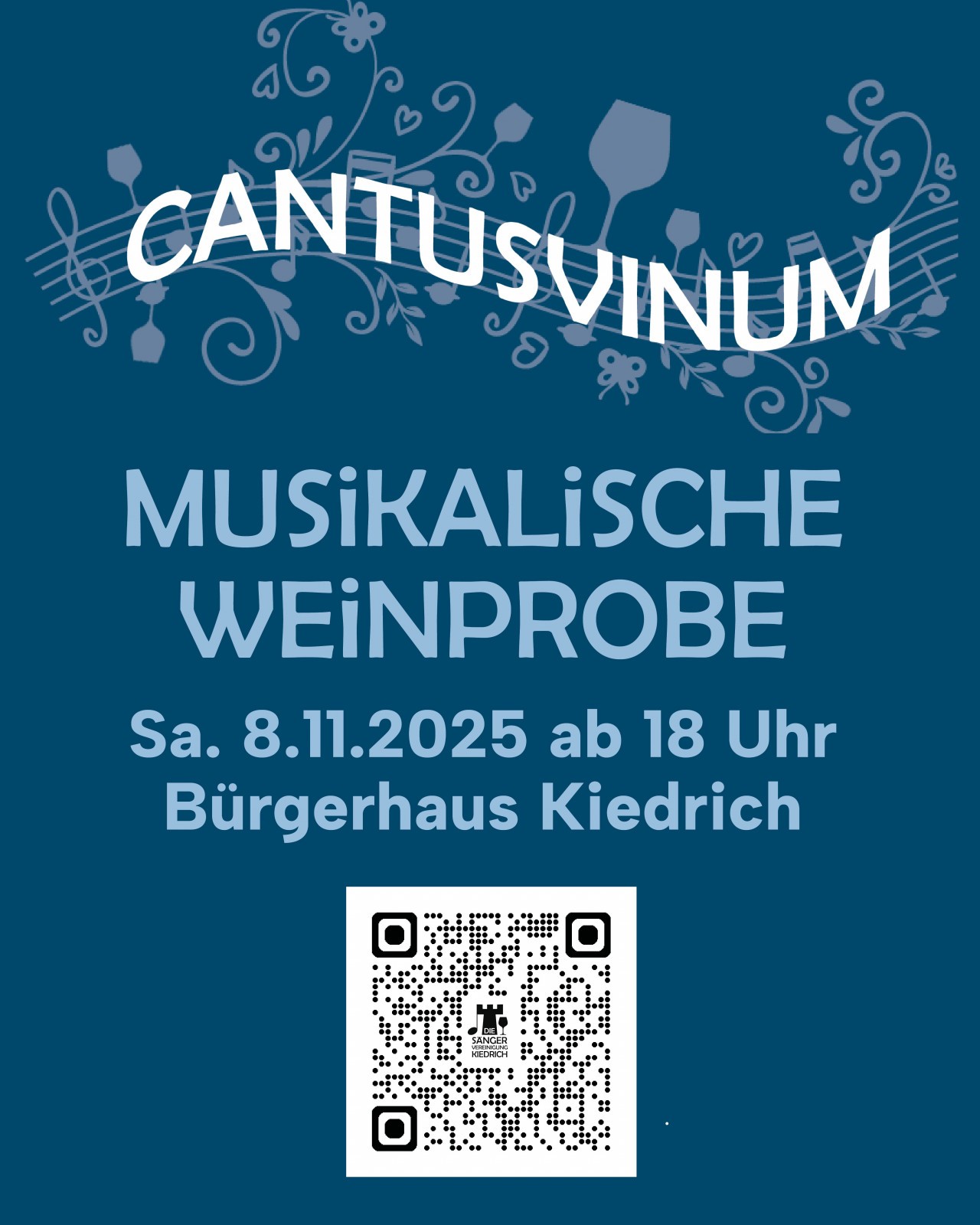 „Tenöre und Bässe im Zusammenspiel der Stimmen, dazu erlesene Weine, ein Genuss für alle Sinne“, so kündigt Thomas Maxheimer, Vorsitzender der Kiedricher Sängervereinigung e.V., das Konzert am 8. November 2025 im Bürgerhaus an.