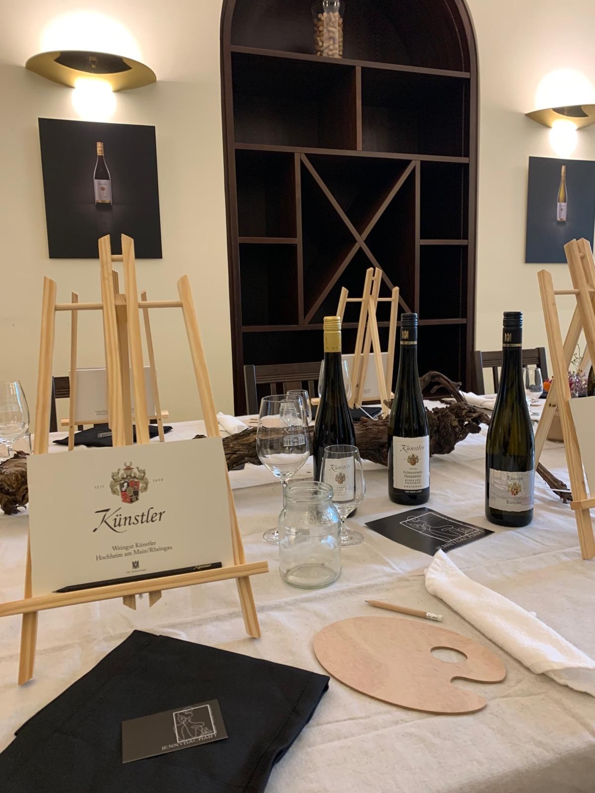 Jenny Bach Art leitet durch einen Malkurs im Weingut Künstler. Begleitet wird dieser Malkurs von Stephanie Kopietz (ehemalige Rheingauer Weinkönigin ) mit einer Weinprobe