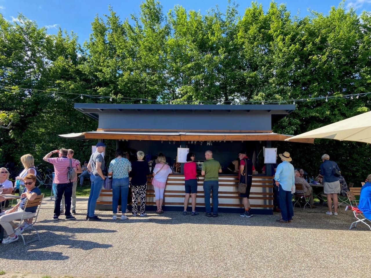 Unser Weinstand steht im Friesental auf einer schönen Wiese unter hohen Bäumen (Stand Nr. 7) in der Nähe von Schloß Vollrads.