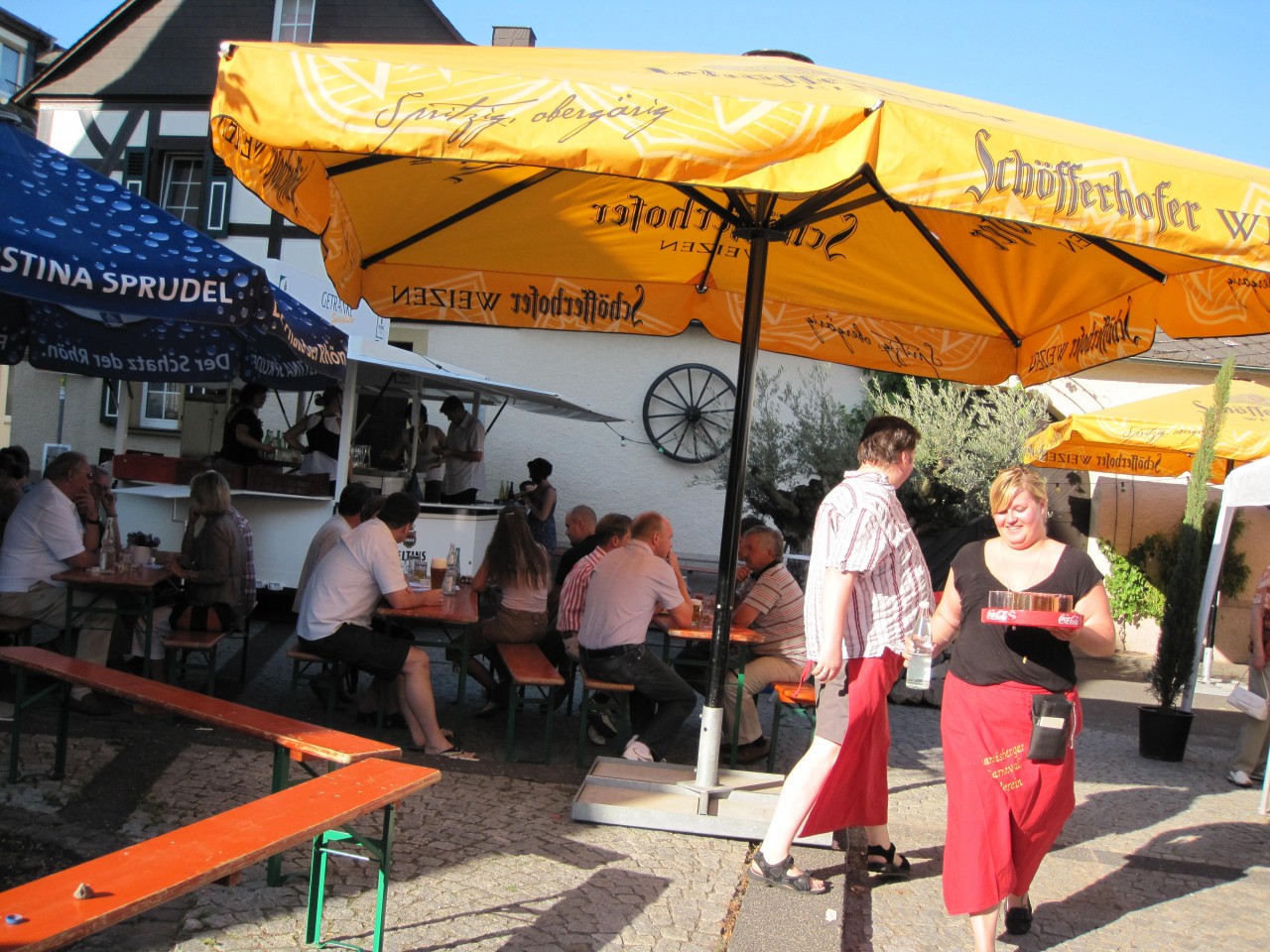„Wo die Jungfer das Mehrhölzchen küsst“, unter diesem Motto lädt die kleine Weinbaugemeinde am Rande des Taunusgebirges am ersten Wochenende im August zu einem viertägigen Fest rund um das köstliche Nass ein.